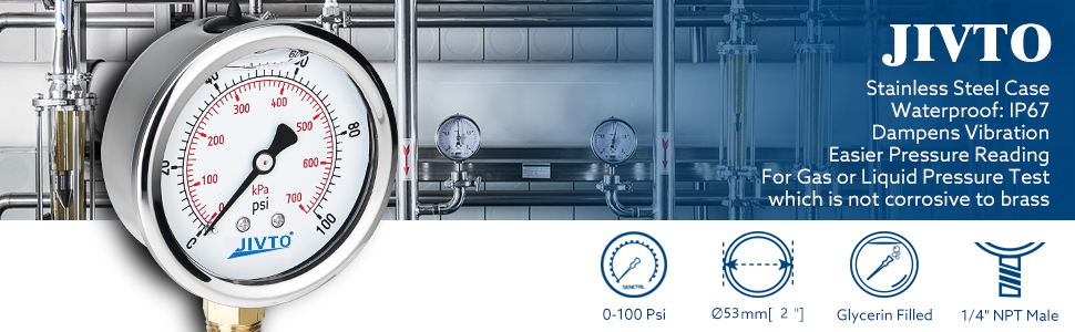 - Anti-Vibration Design – 304 stainless steel case filled with glycerin minimizes pointer flutter and enhances lifespan.